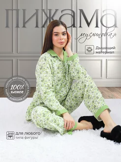 Жаккардовая пижама с рубашкой и со штанами хлопок
