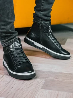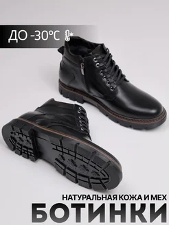 Ботинки зимние, высокие, черные, натуральная кожа и мех