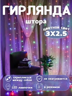 Светодиодная гирлянда штора новогодняя 3х2,5 занавес