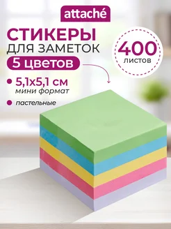 Стикеры для заметок 51x51 мм, 5 цветов, 1 блок 400 листов