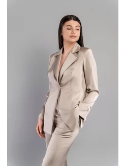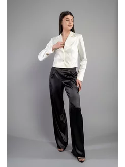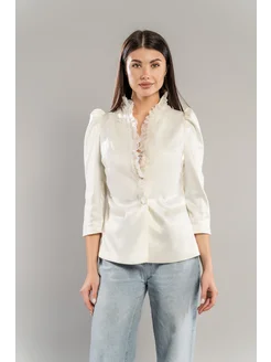 Жакет пиджак нарядный рукав фонарик белый атласный