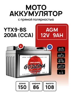 Аккумулятор для мотоцикла AGM 12В 9Ач СТ1209, YTX9-BS