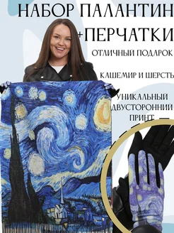 Комплект Палантин и перчатки Ван гог картина Звездная ночь
