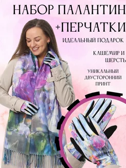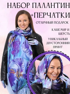 Комплект набор Палантин и перчатки "Ирисы Фиолетовые"