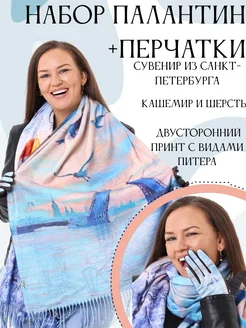 Комплект Палантин и перчатки "Питерский пейзаж"