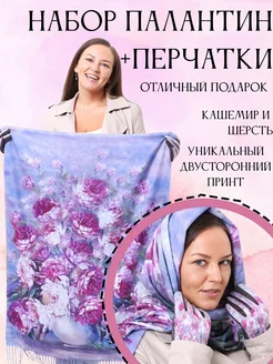 Комплект Набор Палантин и перчатки "Цветущие пионы"