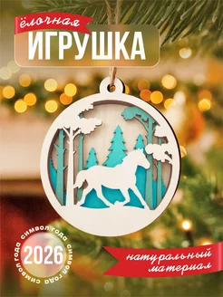 Деревянная ёлочная эко-игрушка "Лошадь"