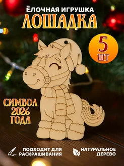 Деревянная ёлочная эко-игрушка "Лошадка" 5 шт