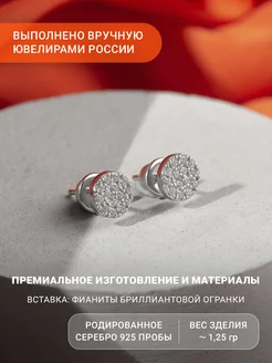 Серебряные серьги пусеты с фианитами, 925 проба