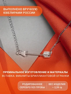 Колье с фианитами Стрела Амура, серебро 925 проба