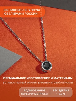 Серебряное колье - цепочка с черным фианитом, 925 проба