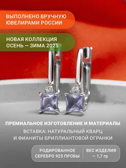 Серебряные серьги 925 проба, вставка кварц, фианит