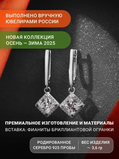 Серебряные серьги с фианитами, 925