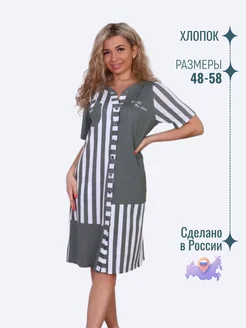 Халат женский домашний на пуговицах короткий рукав хлопок