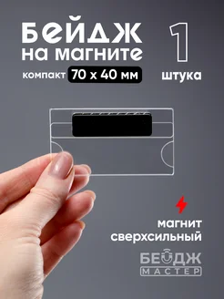 Бейджик прозрачный на магните "Компакт" 70x40 мм - 1 шт