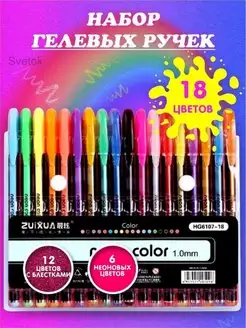 Гелевые ручки цветные неоновые набор 18 шт линеры