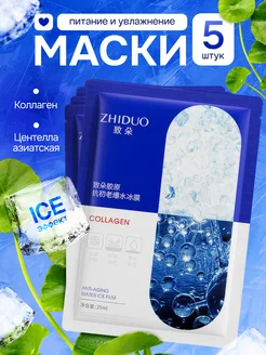 Маски для лица тканевые коллагеновая увлажняющая набор 5 шт