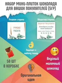 Шоколад подарочный Спасибо за заказ, Ручная работа, 50шт