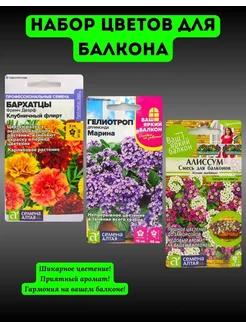 Семена цветов для балкона бархатцы, гелиотроп и алиссум "