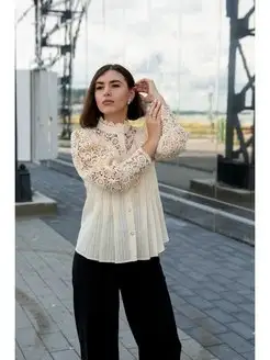 Белая блузка с кружевом