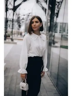 Блузка белая с отложным воротником офисная рубашка школьная