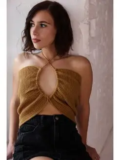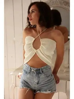 Вязаный бежевый топ на завязках