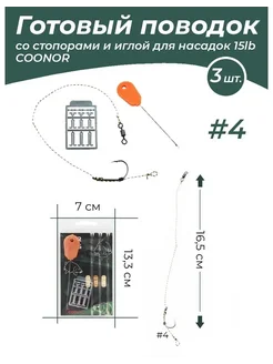 Волосяная оснастка поводки на карпа с иглой и стопорами 3 шт