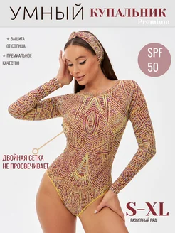 Купальник слитный с рукавами пропускающий загар умный spf