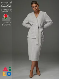 Костюм деловой с юбкой офисный трикотаж