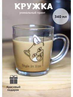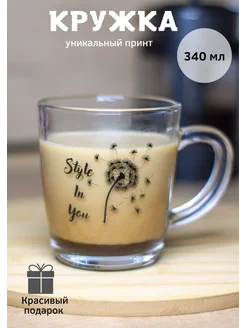 Красивая кружка для чая, для кофе, стеклянная 340 мл