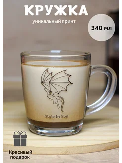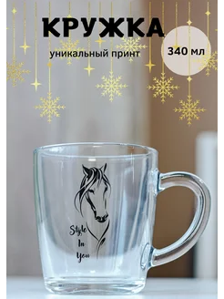 Красивая кружка стеклянная 340 мл. на подарок