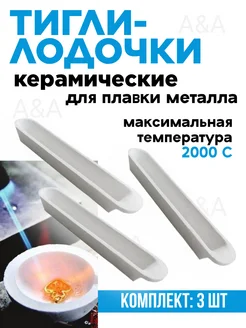 Набор тиглей керамических, лодочки керамические 3 штуки