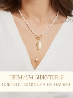Колье из натурального барочного жемчуга с подвеской перышко