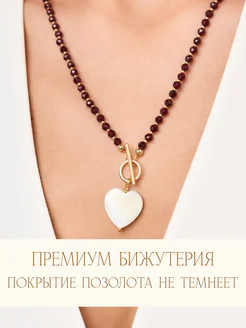 Колье из натурального граната с подвеской сердце