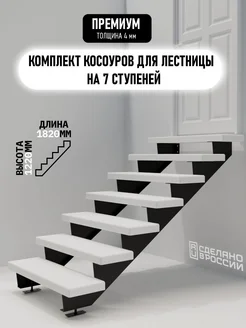 Косоуры для лестницы Премиум на 7 ступеней, чёрный