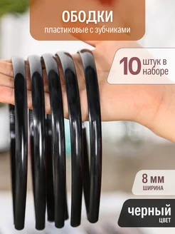 Ободок пластиковый с зубчиками скругленный (8 мм) черный