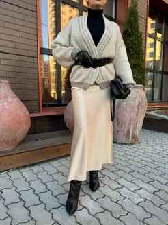 Атласная юбка шелковая трапеция тренд 2024-2025