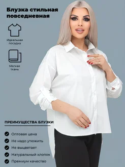 Блузка рубашка оверсайз больших размеров белая длинная сзади