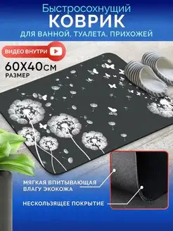 Коврик для ванной и туалета противоскользящий быстросохнущий