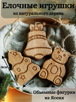 Елочные новогодние игрушки набор из натурального дерева
