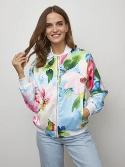 Двухсторонний утепленный розовый бомбер оверсайз с принтом