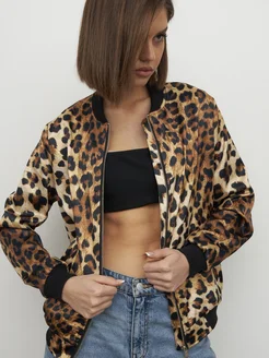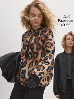 Двухсторонний утепленный леопардовый бомбер оверсайз