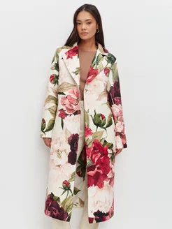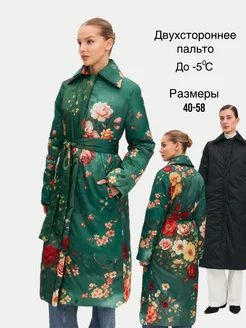 Двустороннее пальто с цветочным принтом демисезонное длинное