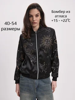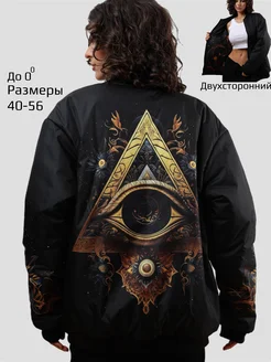 Двухсторонний утепленный черный бомбер оверсайз с принтом