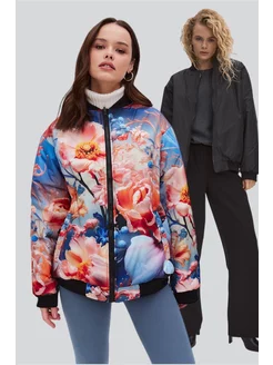 Двухсторонний теплый цветочный бомбер с принтом оверсайз