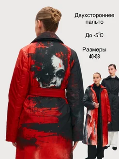 Двухстороннее пальто с принтом демисезонное оверсайз