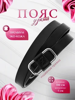 Ремень узкий кожаный пояс тонкий классической пряжкой