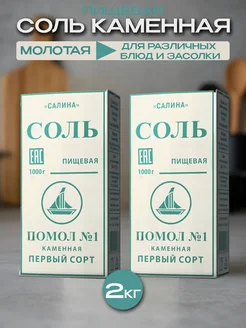Соль пищевая Каменная помол №1 первый сорт, 1000г, 2шт