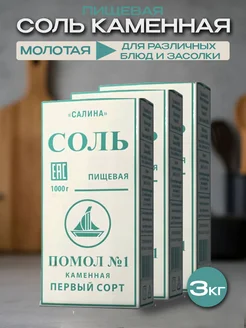 Соль пищевая Каменная помол №1 первый сорт, 1000г, 3шт