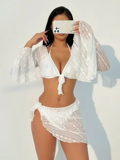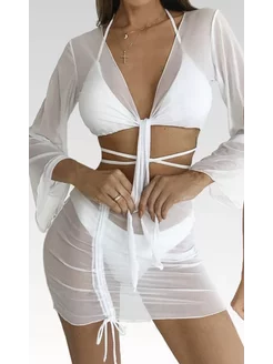 Купальник раздельный с высокой посадкой с юбочкой и накидкой